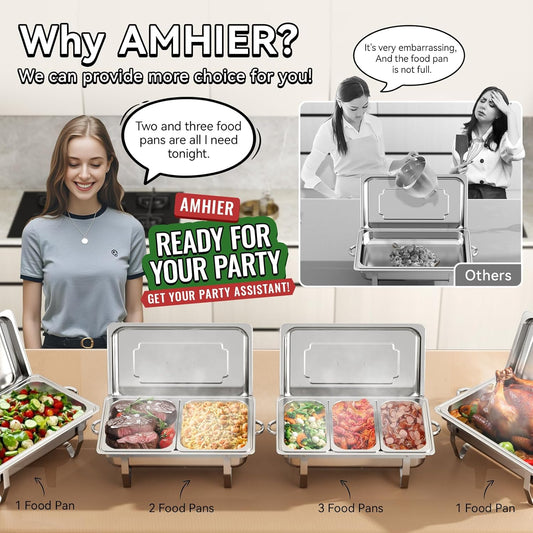 Chafing Dishes for Buffet 9QT 2 Pack, Easy Assembly, Food-Grade Stainless Steel Chafers for Catering w/Rolled Edge Design, Foldable Frame, for Party, Banquet (Full Size Food Pan)