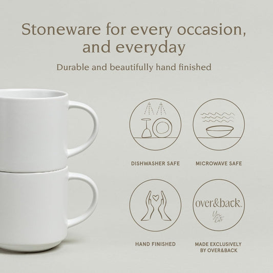 over&back Stackable Stoneware Coffee Mugs - 4-Piece Mug Set - Enjoy the Perfect Cup of Coffee, Tea, Latte, and More - Glossy White - 14oz