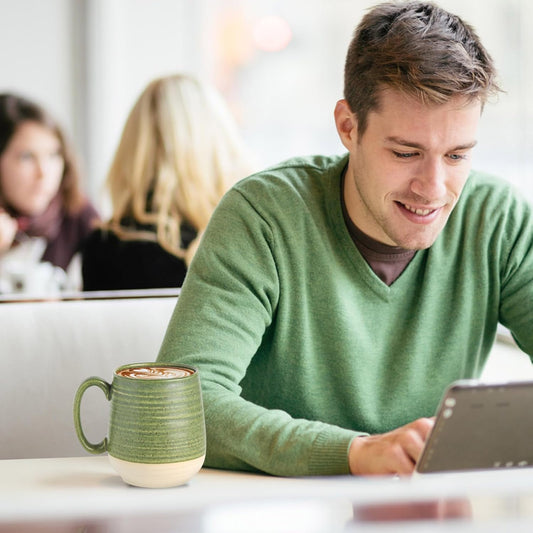 20 oz Large Ceramic Coffee Mug, Coffee Mugs for Women and Men, Big Tea Cups, Large Handle Handmade Pottery Mug for Office and Home, Microwave and Diahwasher Safe (Green with Stripes, 1PCS)