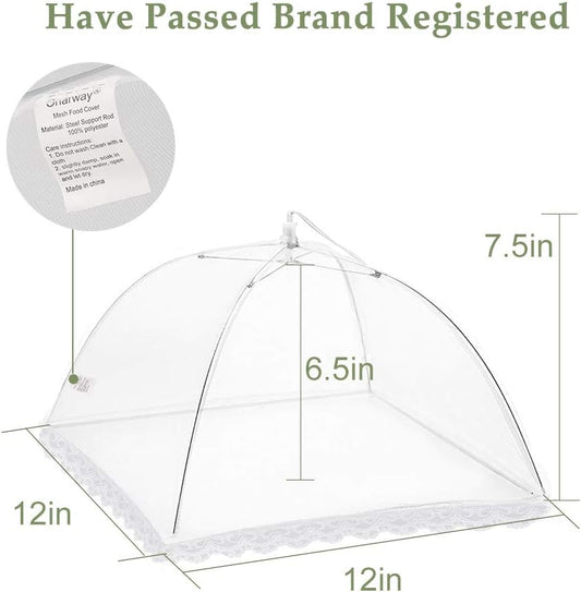 Onarway 6 Pack Food Covers 17 Inch Pop-Up Encrypted Mesh Plate Serving Tents, Fine Net Screen Umbrella for Outdoors, Parties, Picnics, BBQs, Reusable and Collapsible