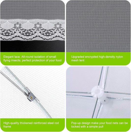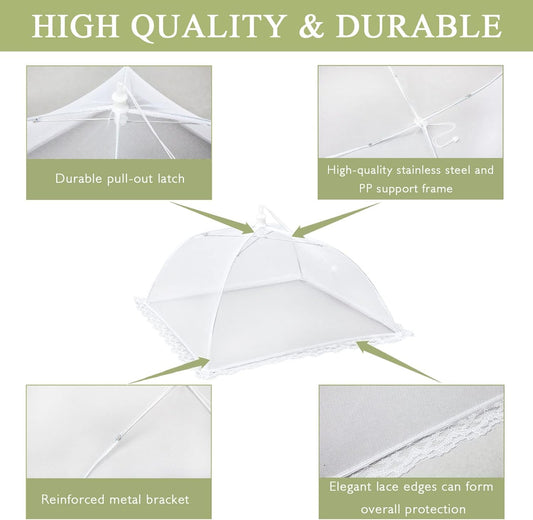 Mesh Food Covers for Outside - Upgraded 6 Pack Large 17x17 in Food Tent Food Cover Outdoors Party Collapsible Picnic Nets Umbrella Mesh Screen Pop Up Food Dome (White)
