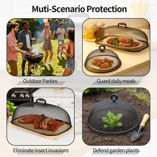 Gerrii 6 Pcs Metal Mesh Food Cover Outdoor Mesh Food Tents Dome Screen Plate Covers for Dinner Plates Reusable Fruit Fly Nets Picnic Food Umbrella for Table, BBQ, Camping, Party (Black,11 Inch)