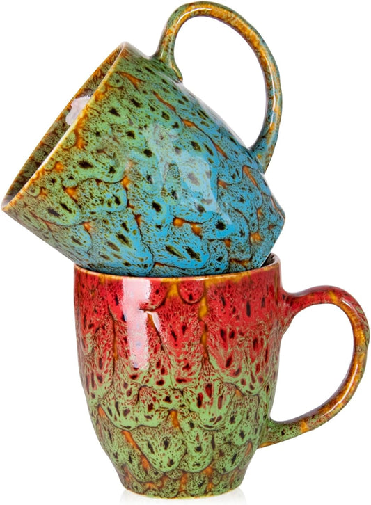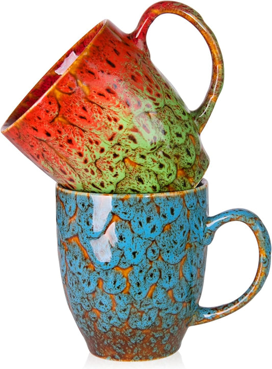 Set of 2 Durable 16 oz Coffee Cups, Large Coffee Mugs with Ergonomic Handle, Ceramic Mugs Dishwasher & Microwave Safe, Ideal Tea Mugs for Home, Office, Gifts (coffee, Tea, Hot Cocoa, Latte Cup)