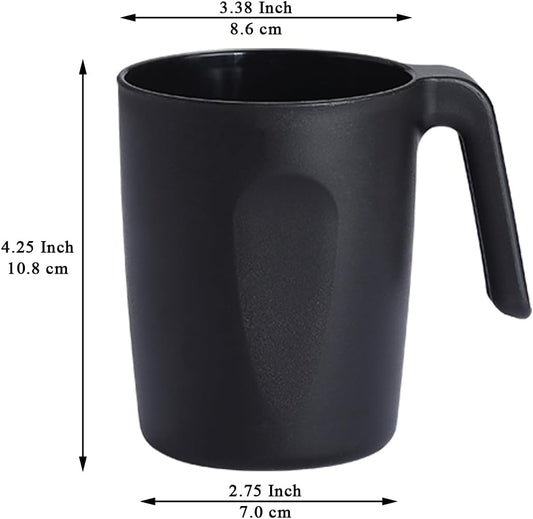 Kyraton Plastic Mug Set 12 Pieces, Black Unbreakable And Reusable Light Weight Travel Coffee Mugs Espresso Cups Easy to Carry And Clean, Dishwasher Safe