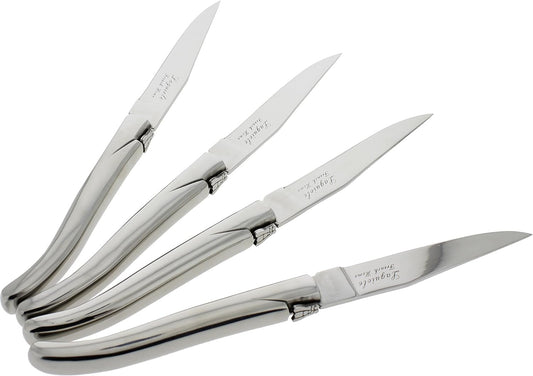 French Home Laguiole Connoisseur 4-Piece Steak Knives – Stainless Steel Dinner Knives with Etched Detailing & Napoleon Bee Emblem Packed in an Elegant Box (9")