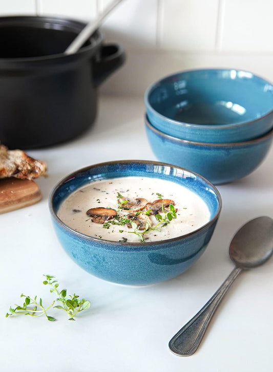 LE TAUCI Cereal Bowls 6 Inch, Ceramic Bowl Set for Soup, Dessert, Fruits, Salad, Noodle, Ramen, 22 Ounce Bowls for Kitchen, Set of 4, Ceylon blue