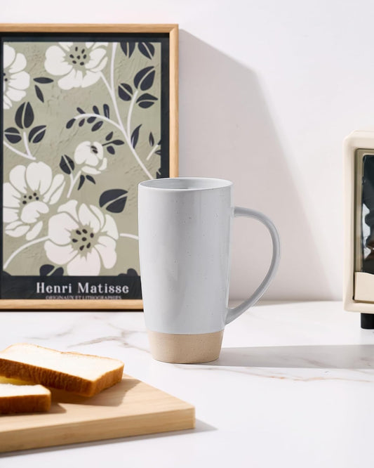 famiware Milkyway Coffee Mugs, 20oz Large Coffee Mug, Ceramic Mug Set of 2 with Lid, Cup Set with Handle for Latte, Tea, Cocoa, Milk, Home & Office, Light Gray and Dark Gray