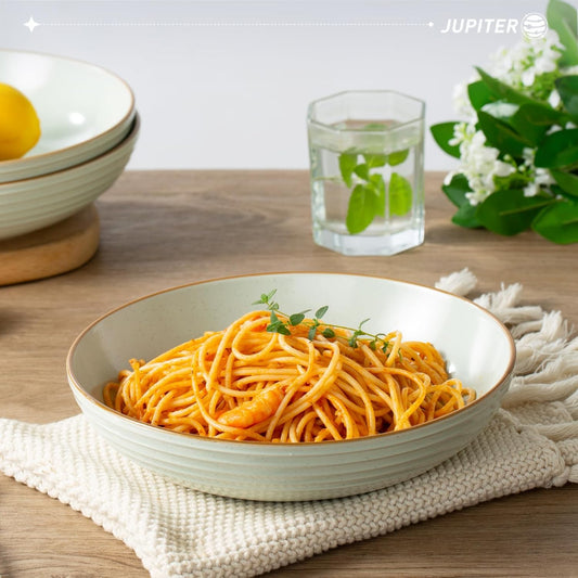 famiware Jupiter Pasta Bowls, 30 OZ Large Salad Bowls Set of 4, Microwave and Dishwasher Safe, Sturdy & Stackable, Serving Bowls for Kitchen, Light Green