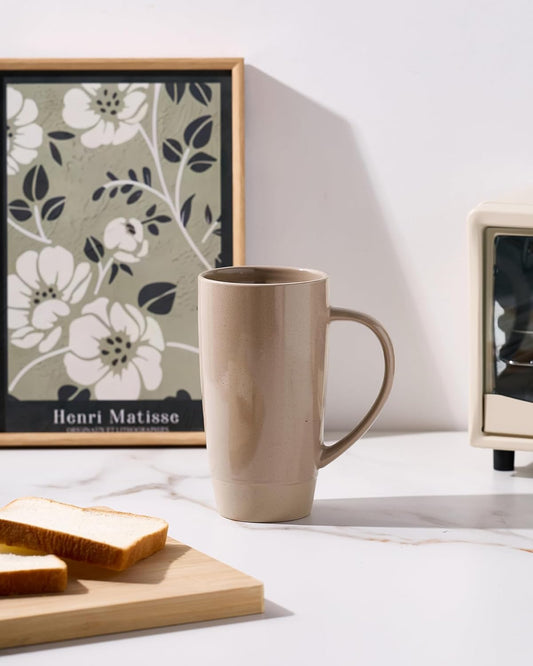 famiware Milkyway Coffee Mugs, 20oz Large Coffee Mug, Ceramic Mug Set of 2 with Lid, Cup Set with Handle for Latte, Tea, Cocoa, Milk, Home & Office, Cinnamon Brown and Light Gray