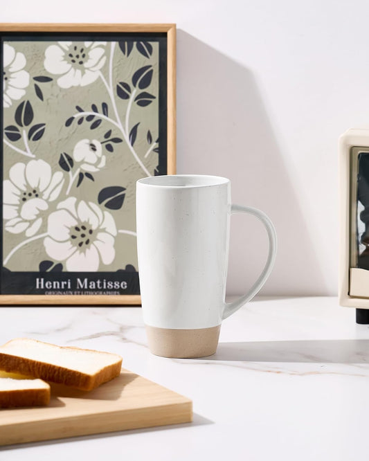 famiware Milkyway Coffee Mugs, 20oz Large Coffee Mug, Ceramic Mug Set of 2 with Lid, Cup Set with Handle for Latte, Tea, Cocoa, Milk, Home & Office, White