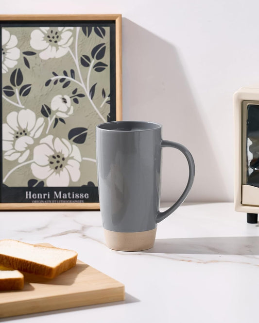 famiware Milkyway Coffee Mugs, 20oz Large Coffee Mug, Ceramic Mug Set of 2 with Lid, Cup Set with Handle for Latte, Tea, Cocoa, Milk, Home & Office, Dark Gray