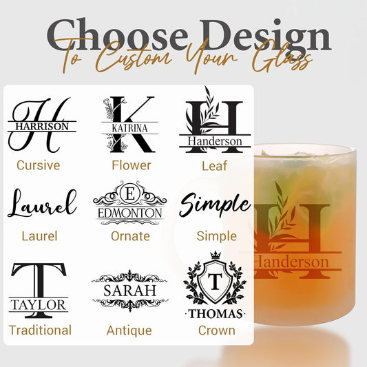Personalized Coffee Mug Engraved with your Custom Name - Customized 11oz Frosted Glass Mugs, Hot Chocolate Mugs, Tea Cup, Birthday Gifts, Retirement Gift (Frosted Mug, Personalized Design)