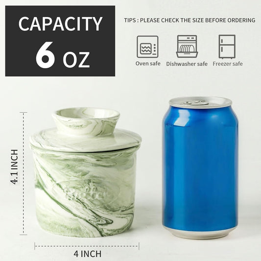 Ceramic Butter Crock, 6 OZ Butter Keeper for Counter, French Butter Dish Big Capacity green