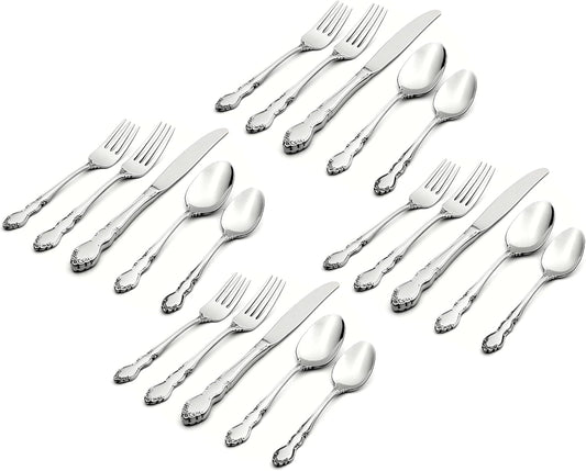 Oneida 2766020AL20 Dover 20-Piece Fine Flatware Set, Service For 4, Mirror Finish