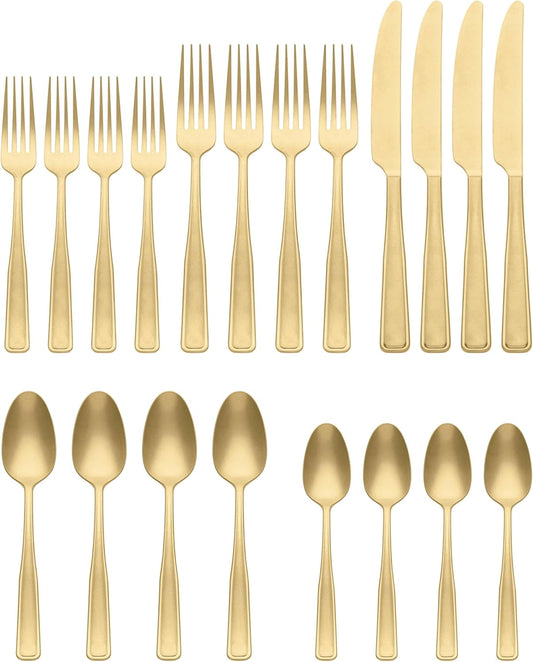 KINGSTONE Silverware Set, 20-Piece Flatware Set for 4, 18/10 Stainless Steel Cutlery Set with Bead Edge, Utensil for Kitchen, Home, Party, Wedding, Mirror Polished, Dishwasher Safe, Featured Gifts