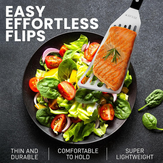 Zulay Kitchen Fish Spatula Stainless Steel - Spatulas for Non-Stick Cookware - Slotted Stainless Spatula - Easy to Clean Turner 12.4