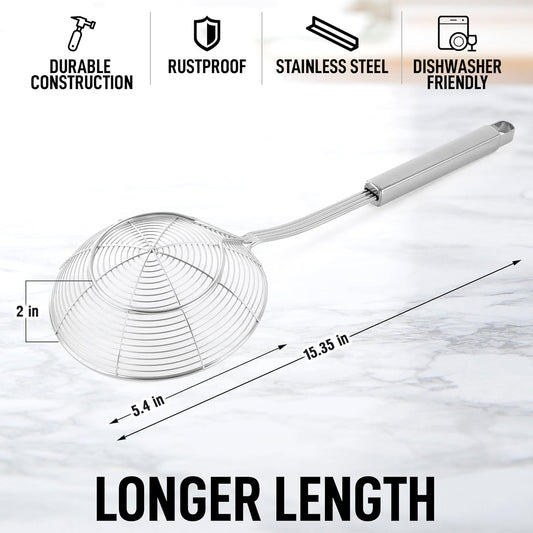 Zulay Kitchen Premium Stainless Steel Spider Skimmer 15.4” - Spider Kitchen Utensil with Premium Ergonomic Handles for Easy Use - Easy to Clean - Perfect for at Home Cooks & Chefs