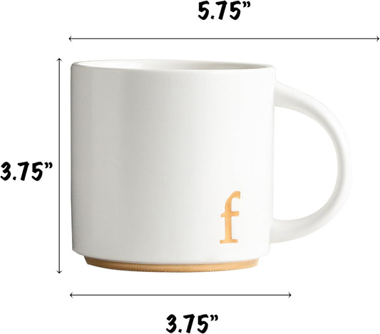 COLLECTIVE HOME - Monogram Ceramic Mugs, 15 oz Golden Initial Coffee Cups, Elegant Alphabet Tea Mugs, Elegant Personalized Mug with Gift Box, Luxurious Cups for Office and Home (f)