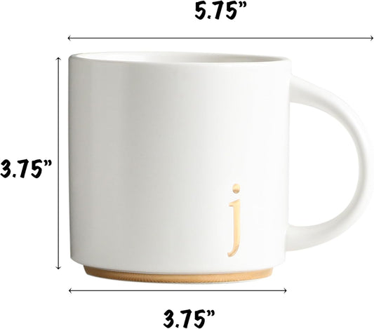 COLLECTIVE HOME - Monogram Ceramic Mugs, 15 oz Golden Initial Coffee Cups, Elegant Alphabet Tea Mugs, Elegant Personalized Mug with Gift Box, Luxurious Cups for Office and Home (j)