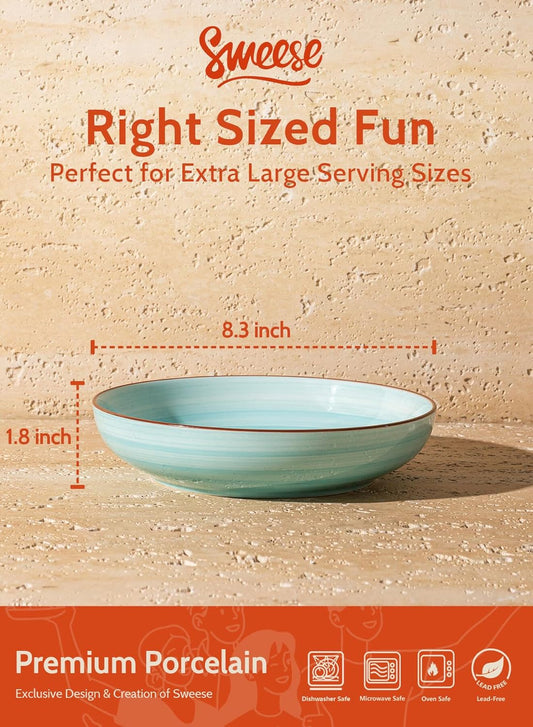 Sweese Pasta Bowls Set of 6, 30 Ounce Ceramic Salad Plates for Dishwasher & Microwave Safe - Solid Salad Bowls, Soup Bowls - Deep Plates Lipped Edges, Oven Safe Porcelain Plates Serving Bowls