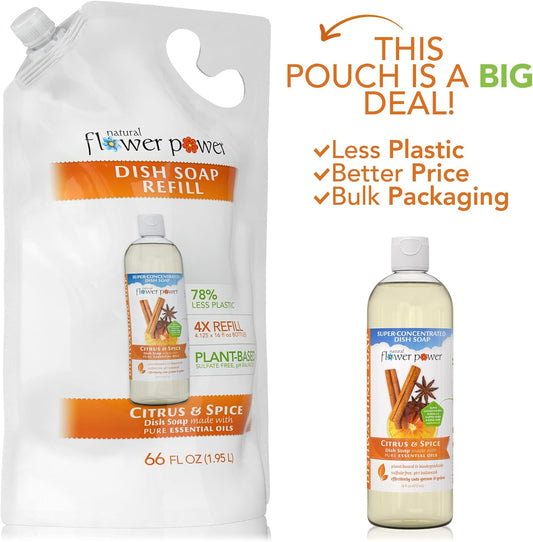 Liquid Dish Soap Refill – 66 Fl Oz Refills 4X – Plant-Based & Scented w/Pure Essential Oils – Natural Dishwashing Detergent – Sulfate-Free Kitchen Soap (Citrus & Spice)