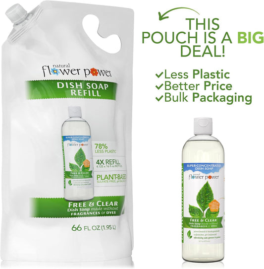 Liquid Dish Soap Refill – 66 Fl Oz Refills 4X – Plant-Based & Scented w/Pure Essential Oils – Natural Dishwashing Detergent – Sulfate-Free Kitchen Soap (Unscented)