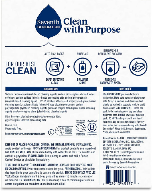 Seventh Generation Dishwasher Detergent Packs Free & Clear for sparkling dishes Dishwasher tabs 45 count