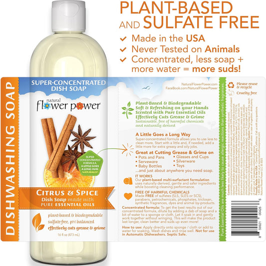 Liquid Dish Soap – Citrus & Spice – Plant-Based & Scented w/ Pure Essential Oils – Natural Liquid Dishwashing Detergent – Sulfate-Free Kitchen Soap – Vegan (16 Fl Oz 3 Pack)