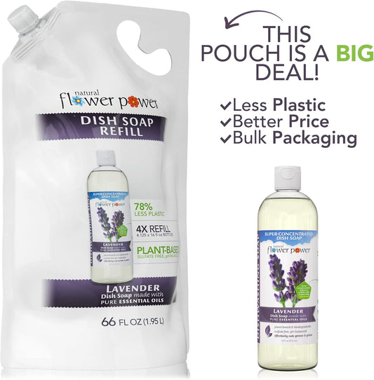 Liquid Dish Soap Refill – 66 Fl Oz Refills 4X – Plant-Based & Scented w/Pure Essential Oils – Natural Dishwashing Detergent – Sulfate-Free Kitchen Soap (Lavender)