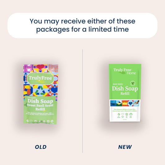Natural Concentrated Dish Detergent Dishwashing Liquid | Plant-Based Dish Soap | Sweet Basil Fresh Scent | 2 Refill Packs with 1 Empty Refillable Squeeze Bottle (16 Oz)