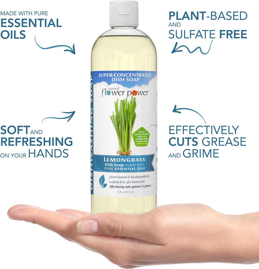Liquid Dish Soap – Lemongrass – Plant-Based & Scented w/ Pure Essential Oils – Natural Liquid Dishwashing Detergent – Sulfate-Free Gentle Kitchen Soap – Vegan (16 Fl Oz 3 Pack)