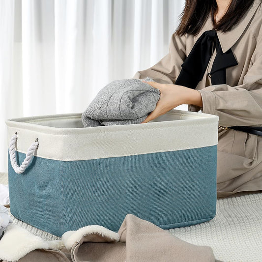 Large Storage Baskets for Shelves, Closet Organizers Bins for Clothes Blanket Towels, Baby Nursery, Toy Baskets Box, Woven Rope Baskets, 17 x 13 x 7.5”, 2 Packs Navy Blue