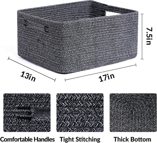 Large Storage Baskets for Shelves, Closet Organizers Bins for Clothes Blanket Towels, Baby Nursery, Toy Baskets Box, Woven Rope Baskets, 17 x 13 x 7.5”, 3 Packs Black