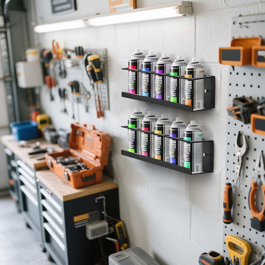 UNITEDPOWER 5 Aerosol Spray Can Holder, Paint Bottle Storage Rack, Steel Wall Mount Shelf, Tool Organizer for Garage, Craft Workspace and Home