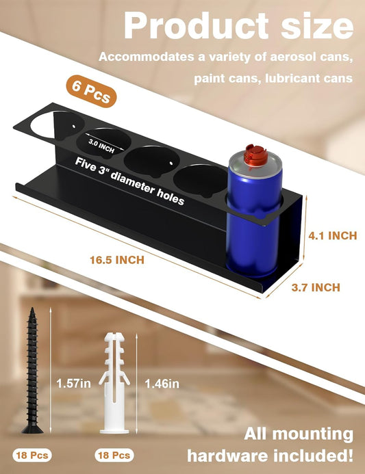 6 Pack Spray Can Holder Organizer, Wall-Mounted Steel Spray Bottle Rack, Tool Box Storage Rack, 5 Cans Metal Paint Can Organizer for Garage, Workspace, Shop, Home or Tool Trailer, Black