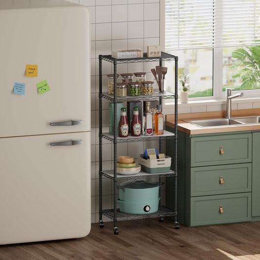 SINGAYE 5 Small Wire Shelves Kitchen Pantry Close Home Organizers and Storage Bathroom Shelf Laundry Room Organization Adjustable Book Metal Garage Shelving Unit