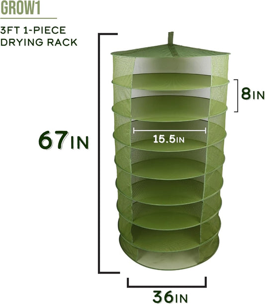 Grow1 3ft Drying Rack 1-Piece Collapsible Mesh Herb and Flower Hanging Dryer with Carrying Case for Even Airflow and Secure Harvest Storage