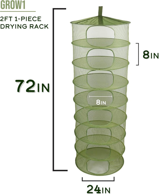 Grow1 2ft Drying Rack 1-Piece Collapsible Mesh Herb and Flower Hanging Dryer with Carrying Case for Even Airflow and Secure Harvest Storage