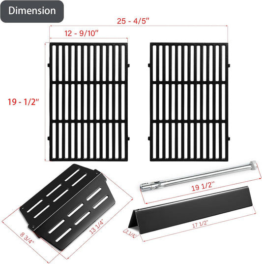Uniflasy Grill Replacement Parts for Dyna-Glo DGH474CRP,DGH485CRP,Grill Part Kit for Dyna-Glo 3/4/5 Burner Grill,5-Pack Porcelain Steel Grill Heat Plates, 3-Pack Cast Iron Cooking Grates