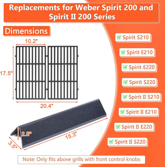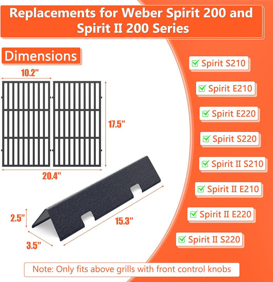 QuliMetal 7637,7635 Grill Parts for Weber Spirit E-210, Spirit 200, GS4 Spirit II 200, Spirit II E-210 Series, Spirit II E-210 Gas Grills,(Front-Mounted Control),15.3" Flavorizer Bars & 17.5" Grates