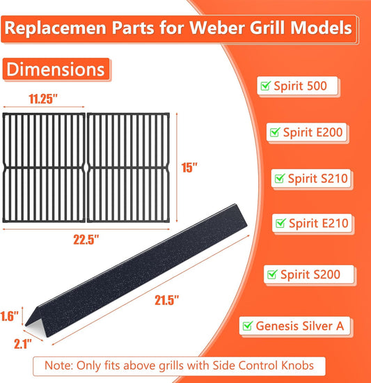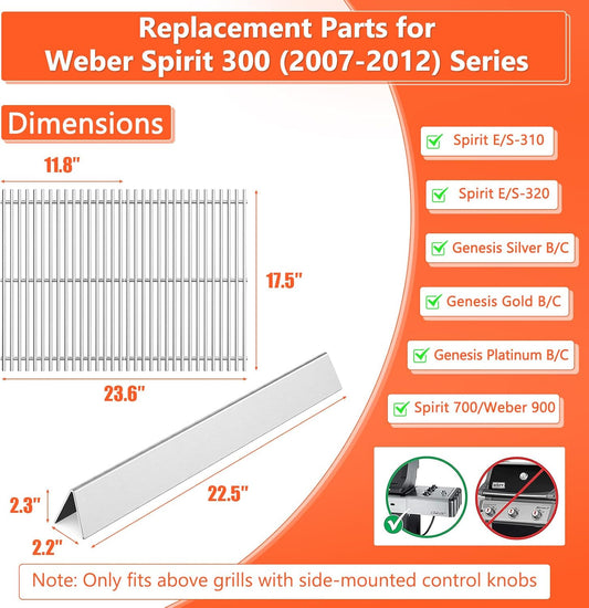Spirit Grill Replacement Parts for Weber Spirit, 17.5" Grill Grates 15.3" Flavorizer Bars for Weber Spirit 300 & GS4 Spirit II 300, Spirit E-310 E-315 Grills with Front Control, for Weber 7639 7636