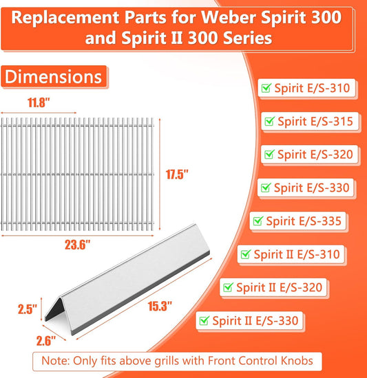 Spirit E310 Grill Parts for Weber Spirit, 17.5" Grill Grates 15.3" Flavorizer Bars for Weber Spirit 300 & GS4 Spirit II 300, Spirit E-310 E-315 Grills with Front Control Knobs for Weber 7638 7636