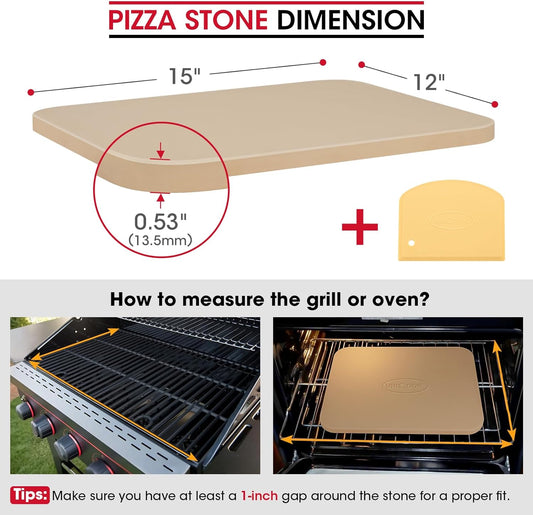 Unicook 15 x 12 Inch Pizza Stone for Oven and Grill, Cordierite Rectangular Baking Stone, Thermal Shock Resistant, Ideal for Baking Crispy Pizzas, Bread and Cookies