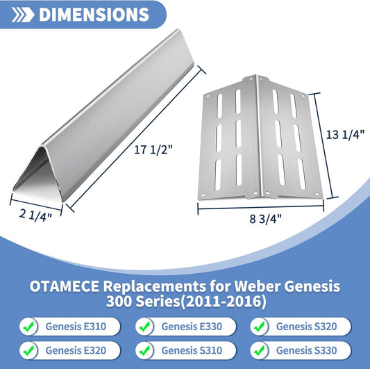 7620 Flavorizer Bars 7622 Heat Deflector for Weber Genesis Grill Parts 300 Series E/S-310 320 330 EP/cep-310 320 330 (with Front Control Knob),Stainless Steel Heat Plate