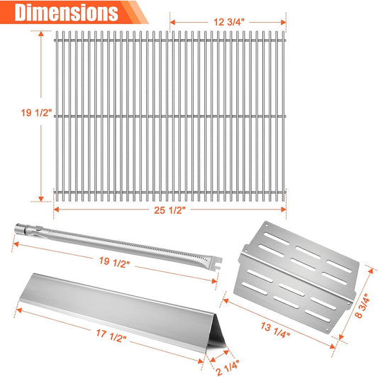 Stainless Steel 7524 7528 Grill Grates with 7620 7621 Flavorizer Bars 65505 Heat Deflectors and 62752 Burner for Weber Genesis Grill Parts 300 Series E310 E320 E330 S310 S320 S330