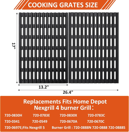 SafBbcue Upgrade 720-0830H Grill Grates for Nexgrill 720-0888N 720-0830A 720-0670C 720-0888S 720-0783EH 720-0888 720-0783W Charbroil 463449914 463446015 Grill Parts Heacy-Duty Cast Iron