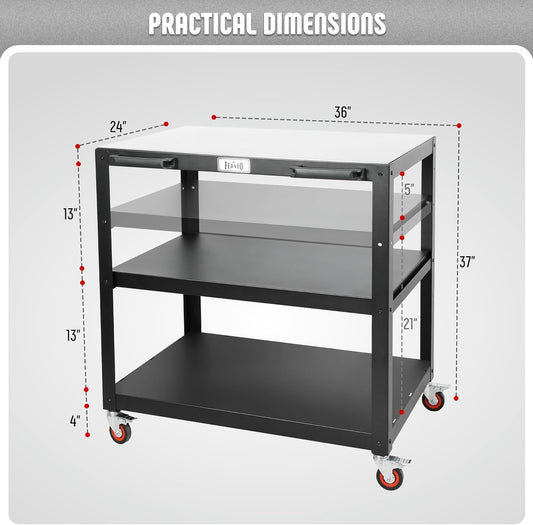 36''x 24'' Large Movable Pizza Oven Table for Outdoor, 304 Stainless Steel Grill Cart with Wheels, 3-Shelf Outdoor Kitchen Prep Table Pizza Oven Stand on Wheels for Ooni 16, Blackstone Griddle