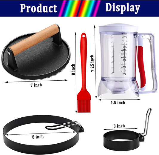 8-Piece Griddle Breakfast Kit for Blackstone - Complete Set of Griddle Accessories,Pancake Batter Dispenser, Bacon Press,Egg Rings and Basting Brush Included