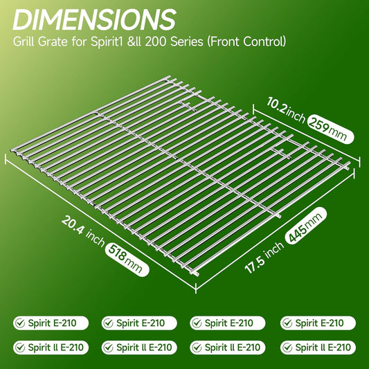 17.5 inch Grill Cooking Grates for Weber Spirit E210 E-220 S210 S-220 Spirit 200&Spirit II 200 Series Gas Grills with Front Control, Stainless Steel Grates Replacement Parts for Weber 7637 Gas Grills