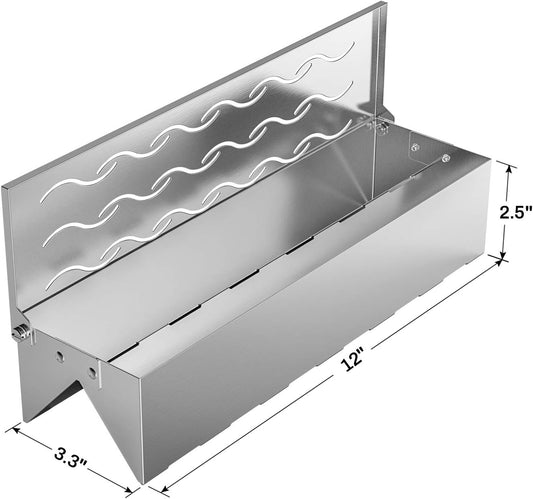 Skyflame Wood Chip Smoker Box, Stainless Steel Double V-shape BBQ Smoke Box with Hinged Lid for Charcoal & Propane Gas Grill, 12.5"(L) x 3.3"(W) x 2.5"(H), U.S. Design Patent